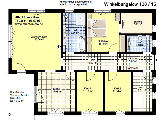 4 Zimmer, Ankleide, Küche, 2 Bäder, überdachter Terrassenbereich - Variable Zimmeraufteilung - ganz nach Ihren Wünschen!