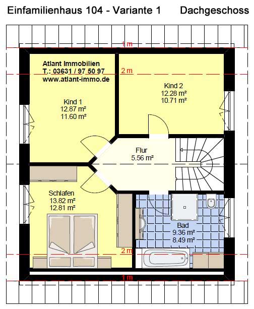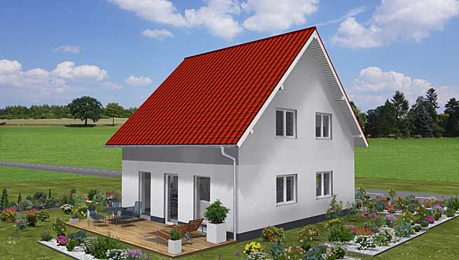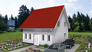 45° Satteldach; 1,00 m Kniestock - 50 cm Dachüberstand.