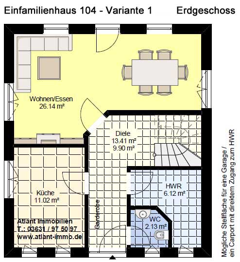 - Ausführung mit 4 Zimmern, Küche, Hausanschlussraum sowie Bad + Gäste-WC